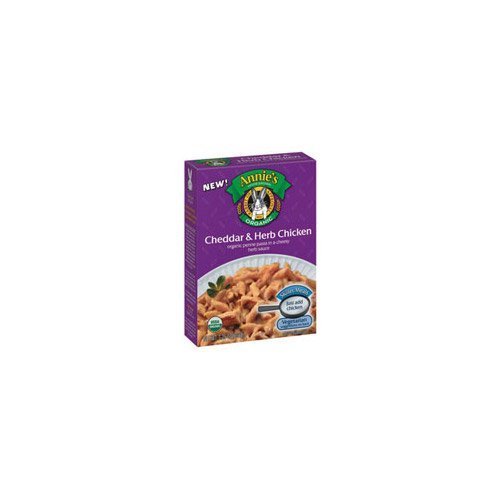 ANNIES HOMEGROWN 6x 7.25 OZ HERB & CHEDDAR ORGANIC CHICKEN. Annies has created an easy way to spice up your chicken! Annies Cheddar and Herb Chicken are made with organic penne pasta and a cheesy herb sauce that adds a little humph to your chicken entree. Just add chicken or your favorite vegetarian alternative.:. (Note: This product description is informational only. Always check the actual product label in your possession for the most accurate ingredient information before use. For any health or dietary related matter always consult your doctor before use.)