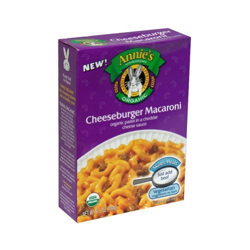 ANNIES HOMEGROWN 6x 6.5 OZ ORGANIC MACARONI CHEESEBURGER. Want to create a meal your child will love that you can also feel good about feeding them? Annies organic cheeseburger macaroni is made with kids-favorite elbow shaped pasta and delicious cheddar cheese sauce. Just add ground beef or your favorite vegetables.:. (Note: This product description is informational only. Always check the actual product label in your possession for the most accurate ingredient information before use. For any health or dietary related matter always consult your doctor before use.)